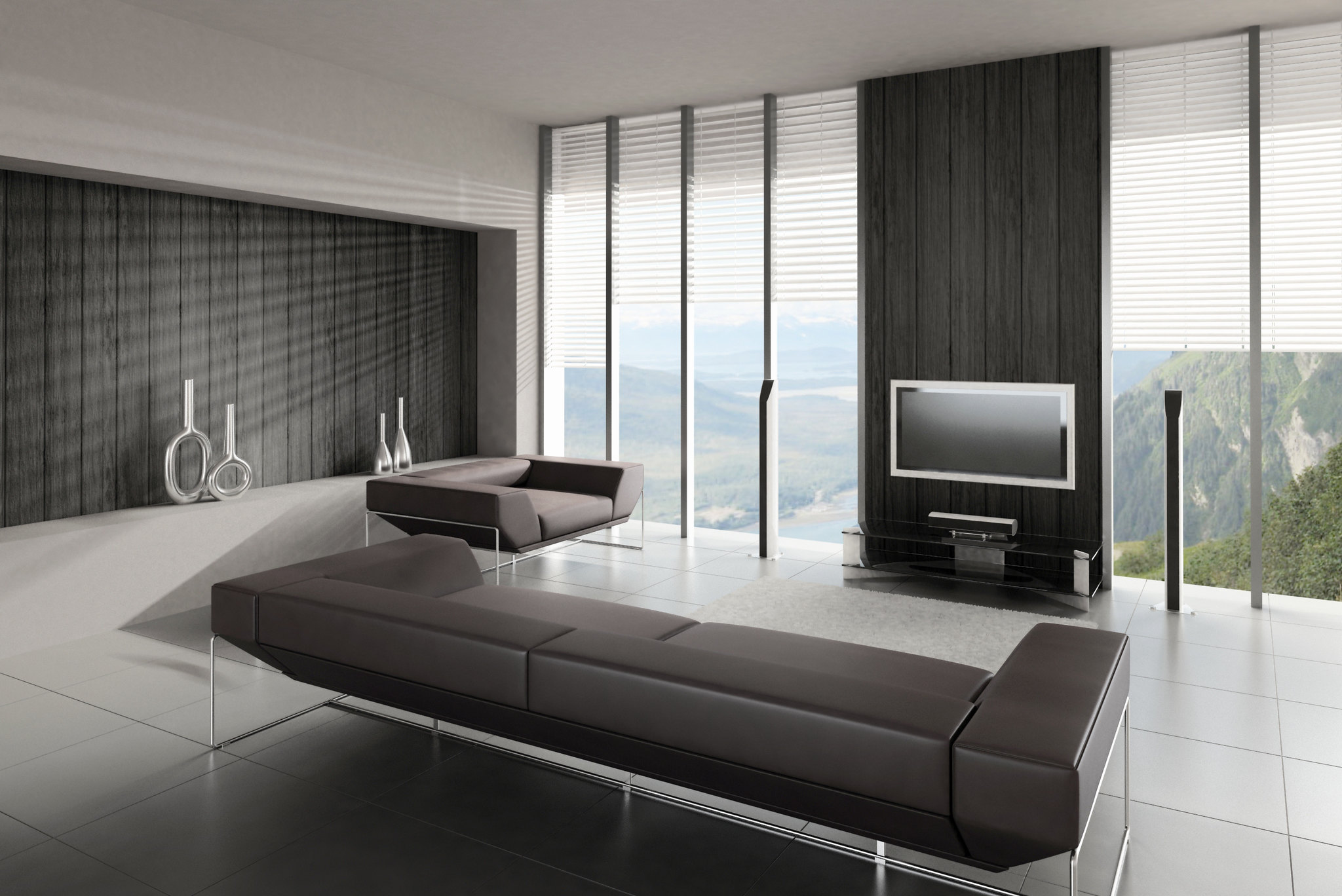 ・モダンスタイルは基本的に無彩色やブラウン、ネイビーなどのダークカラーでまとめるが、