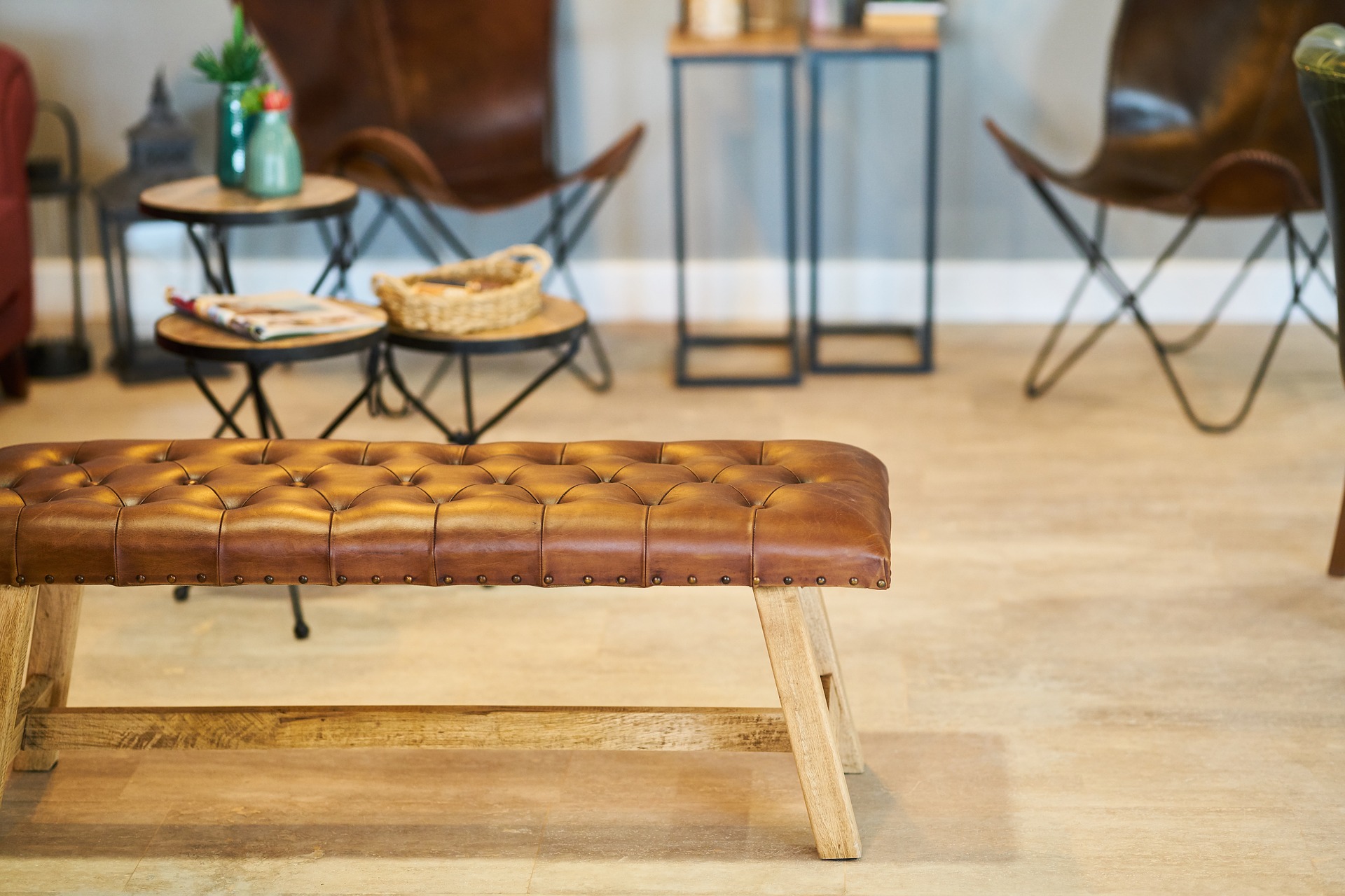 ・アイアンや木、レザーなどが使われた家具、インテリアのコーディネート