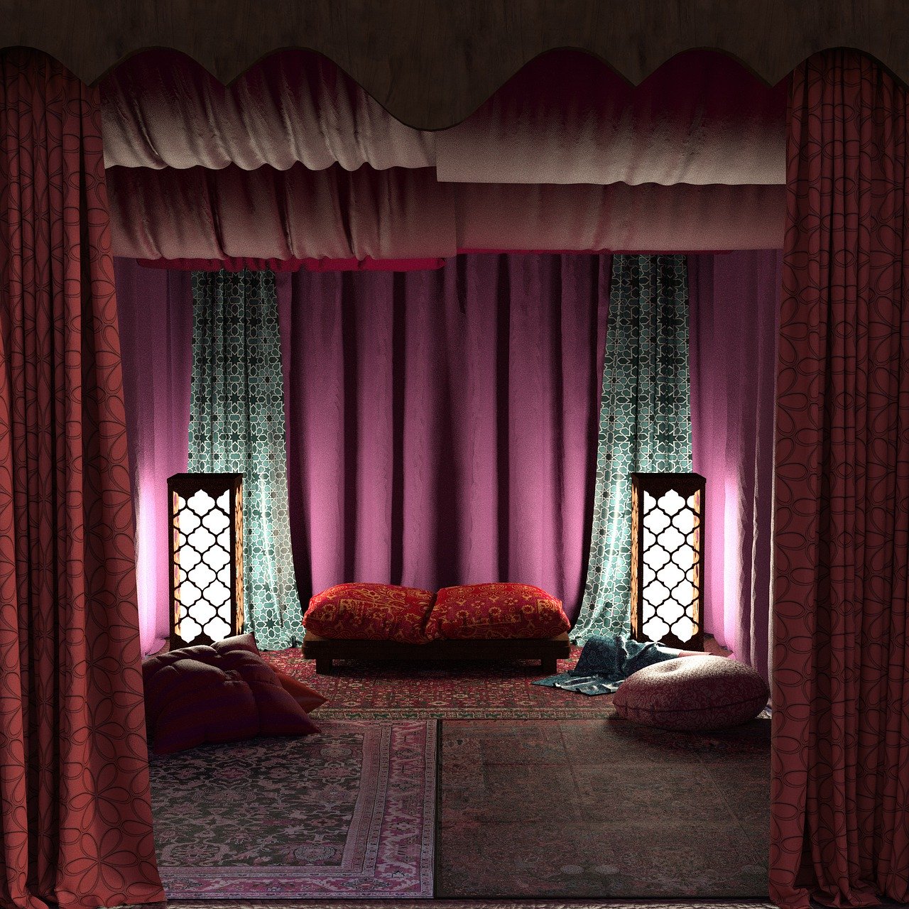 ・アラベスクなどの幾何学模様が使われている